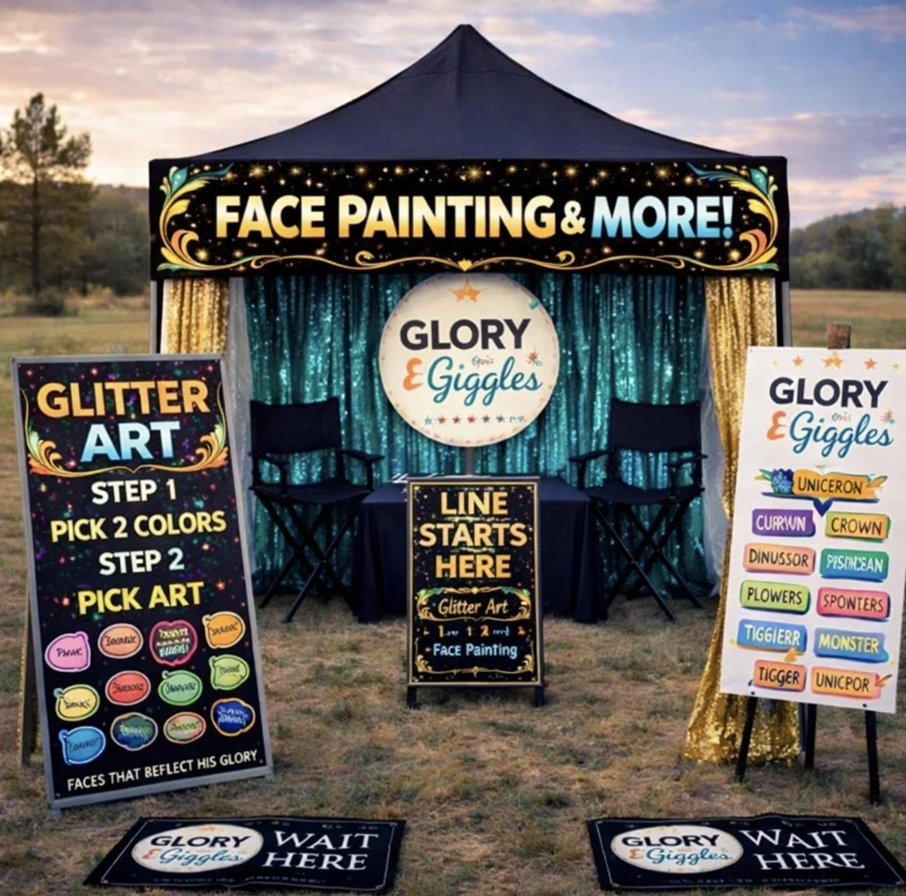 At His Kingdom Creations LLC, dba Glory & Giggles, we believe face painting is more than color on skin—it’s an experience. We are committed to delivering memorable, high-quality artistry with professionalism, care, and respect for every guest.